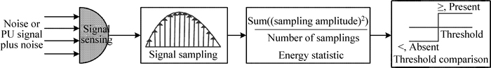 Energy detection is often used in the local single- user detection of cooperative spectrum sensing because of its reliable spectrum detection performance, as shown in Fig. 2. The SUi’s received signal yi for i=1, 2, …, N is given as a binary hypothesis as follows: