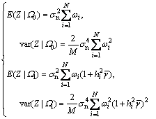 where Z also obeys a Gaussian distribution, which is the weighed sum of a series of Gaussian-distributed functions. From Eq. (4), the means and variances of Z Ω0 and Ω1 are given as follows: