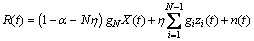 where X(t) is the data signal of the communicating SU, and gi is the channel gain between SUi and fusion center.