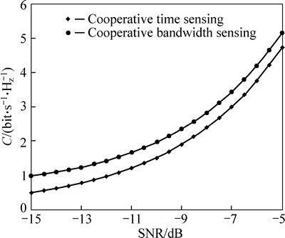Fig. 12 Spectrum efficiency by cooperative time and bandwidth sensing methods