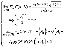 which indicates that C(α, N) is a convex function. Thus α0(N) is the maximal point of C(α, N).