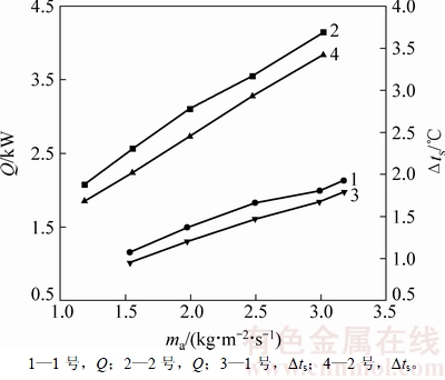 图6 换热量Q和进出口溶液温差△ts随风量密度ma的变化