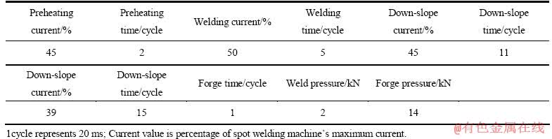 表2 点焊焊接参数