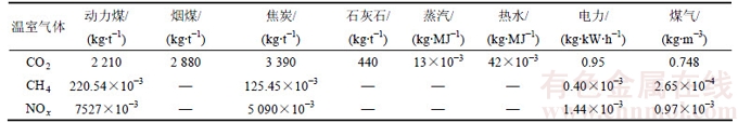 表2 SKS铅冶炼系统所需原料及能源的温室气体排放因子