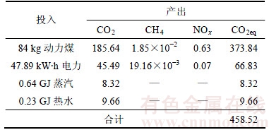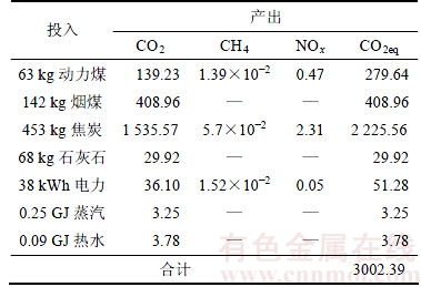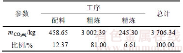 Table 4 I-O assessment of greenhouse gas emission quality per product in smelting process kg