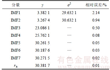 为了得到更好的预测效果,首先对时间序列进行EEMD分解,得到7个IMF分量和1个剩余分量rn,如图5所示。从图5可以看出:IMF1和IMF2波动明显较大,比较复杂。由于径向基核函数是局部核函数,有较强的局部自适应能力,学习能力较强,通过调整核参数,就能够很好地模拟相应的信号,所以,对于IMF1和IMF2选用径向基核函数。IMF3~IMF7和rn相对来说波动不是很大。由于线性核是一种全局性核函数,有着较强的外推能力,适用于对变化比较平缓的信号进行建模,所以,对于IMF3~IMF7和rn选用线性核函数。