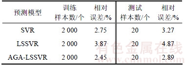 表7 LSSVR参数取值以及预测相对误差