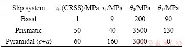 [28] HUTCHINSON B, JAIN J, BARNETT M R. A minimum parameter approach to crystal plasticity modeling [J]. Acta Materialia, 2012, 60(15): 5391-5398.