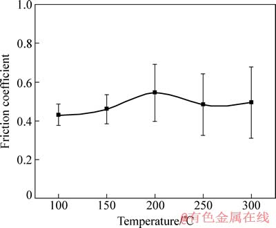 Fig. 2 Variations of friction coefficient of SiCp/A356 composite with temperature