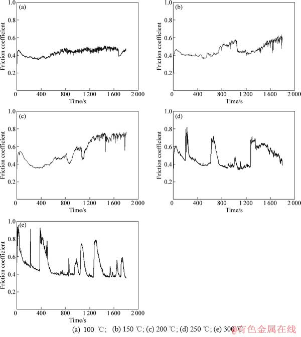 Fig. 9 Friction coefficients curves of SiCp/A356 composites at different temperatures