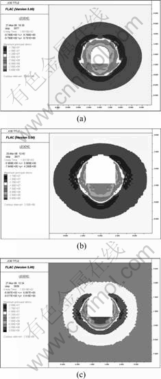 Fig.4 Minimum principal stress: (a) Model Ⅰ; (b) Model Ⅱ; (c) Model Ⅲ