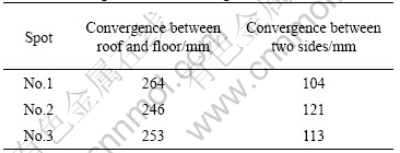 The creep enter the steady-state creep stage in 50 d, and the convergence between roof and floor is obviously larger than the convergence between two sides, as listed in Table 3.