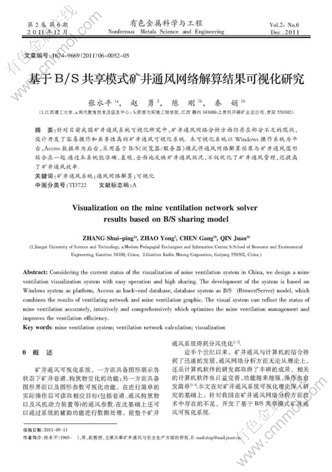 Key words:mine ventilation system; ventilation network calculation; visualization