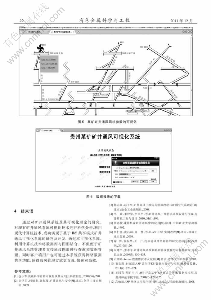 针对目前我国矿井通风系统可视化研究中,矿井通风网络分析方面仍存在部分不足的现状,设计开发了容易操作和共享性高的矿井通风可视化系统本可视化系统以Windows操作系统为平台,Access数据库为后台,采用基于B/S(浏览器/服务器)模式将通风网络解算结果与矿井通风图形结合在一起通过本系统能准确、直观、全面地反映矿井通风状况,不仅优化了矿井通风管理,还提高了矿井通风效率。