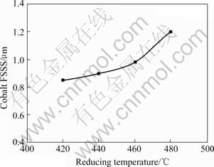 Fig.3 Effect of temperature on FSSS of cobalt powder