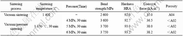 Table 3 Effect of sintering temperature on coercive force of cemented carbides