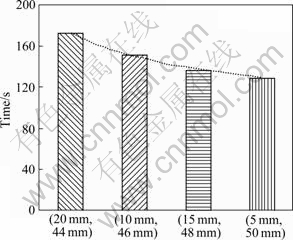 Fig.3 Comparison of ITO removal processing time using different combinations of positive electrode and negative electrode diameter (20% NaNO3, 15 L/min, continuous DC 100 A)