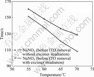 Fig.5 Comparison of ITO removal at different temperatures (FeCl3, 40%)