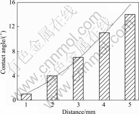 Fig.8 Comparison of contact angle using different excimer irradiation distances (40% NaOH, 70 °C, 225 nm UV light, 30 s)