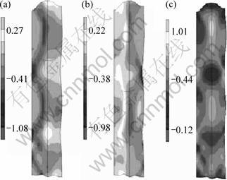 Fig.5 Normal strain distribution of billet: (a) x-axis; (b) y-axis; (c) z-axis