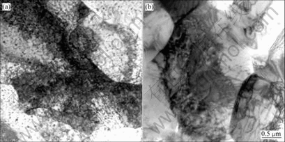 Fig.2 TEM images of specimens from different cooling modes at 300 ℃ with strain rate of 0.01 s-1