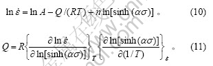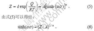 根据双曲正弦函数的定义,可将σ表示成Zener-Hollomon参数Z的函数: