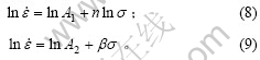 对式(3)两边取对数,并假设变形激活能不随温度而变化,得: