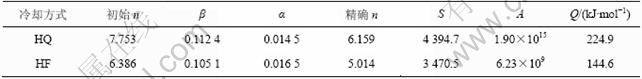 由以上计算可以看出,经历不同冷却方式处理的实验合金热激活能存在很大的差别。快速冷却样品低温时析出细小的第二相颗粒,使得流变应力显著增大,而在高温时细小的第二相发生粗化,致使流变应力降低,缩小了与慢速冷却样品流变应力的差距,但其形变表观激活能仍较纯铝状态的形变表观激活能 (142 kJ/mol[8])高;而慢速冷却条件下的第二相严重粗化,对合金的流变应力影响不大,最终的形变表观激活能与纯铝的相差不大。