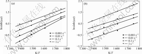 将不同温度下的峰值应力和应变速率代入式(10),利用最小二乘法线性回归,绘制出相应的