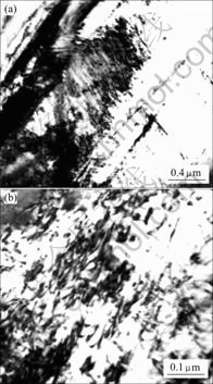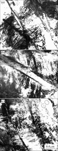 Fig.5 TEM images of Ti-15-3 alloy deformed at different parameters: (a) t=750 ℃, ε=0.4,