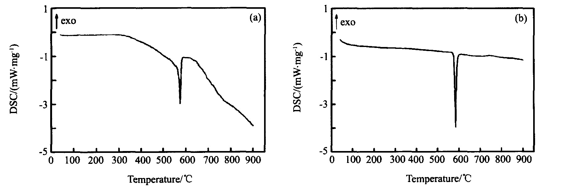 Fig.1 DSC thermogram of spray formed 70Si30Al and casted 70Si30Al alloy (a) As-deposited 70Si30Al alloy; (b) As cast 70Si30Al alloy