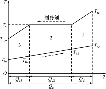 图2所示为冷凝器工作过程。冷凝器的传热过程分为3段:过热段、冷凝段和过冷段。在冷凝器中,存在由传热引起的火积损失。