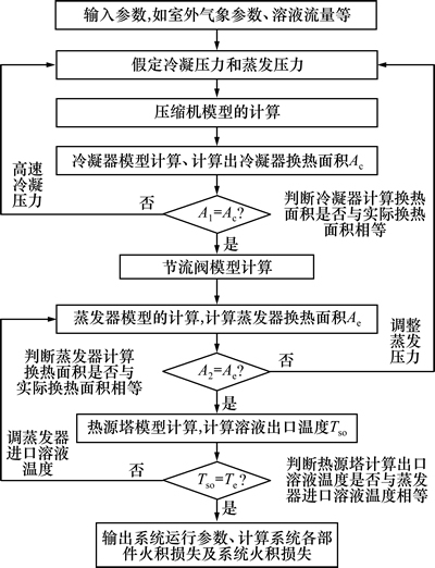 模拟热泵机组运行过程采用VB模拟仿真软件,热源塔热泵系统的各个部件运行是一个相互耦合的工作循环,其程序的实现方式如图4所示。