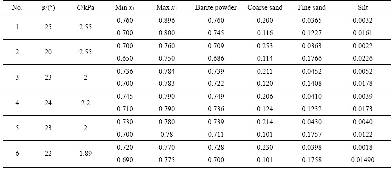 By the same means, we got the parameter of the candidates, in Table 6. The objective value of parameter is that range 0–2.55 kPa for C, and range 6°–25° for φ. It can be found that the candidates of 1#, 5# and 6# are the objective formulation ingredients.