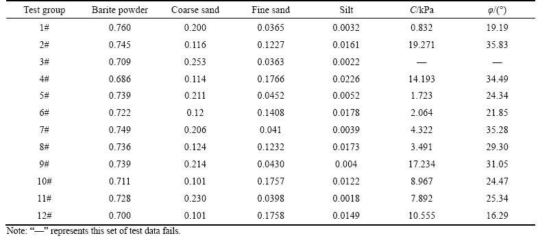 Table 3 Uniform formulation and corresponding result of direct shear test