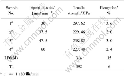 2) 焊接工艺参数ω和v是保证接头致密性和决定组织、 性能的关键因素, 在高的搅拌头旋转速度 ω下能实现高速焊接。