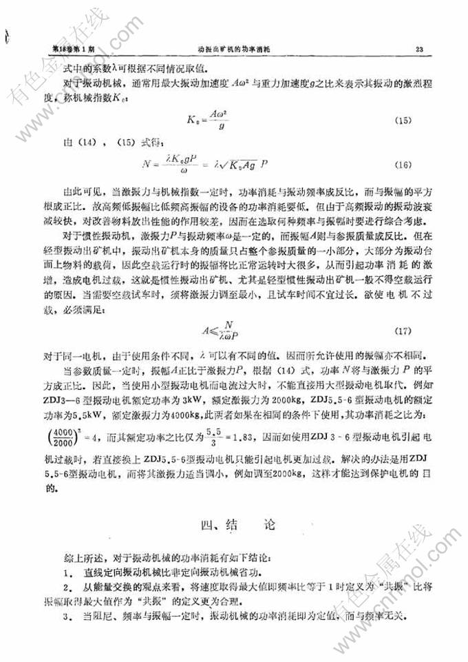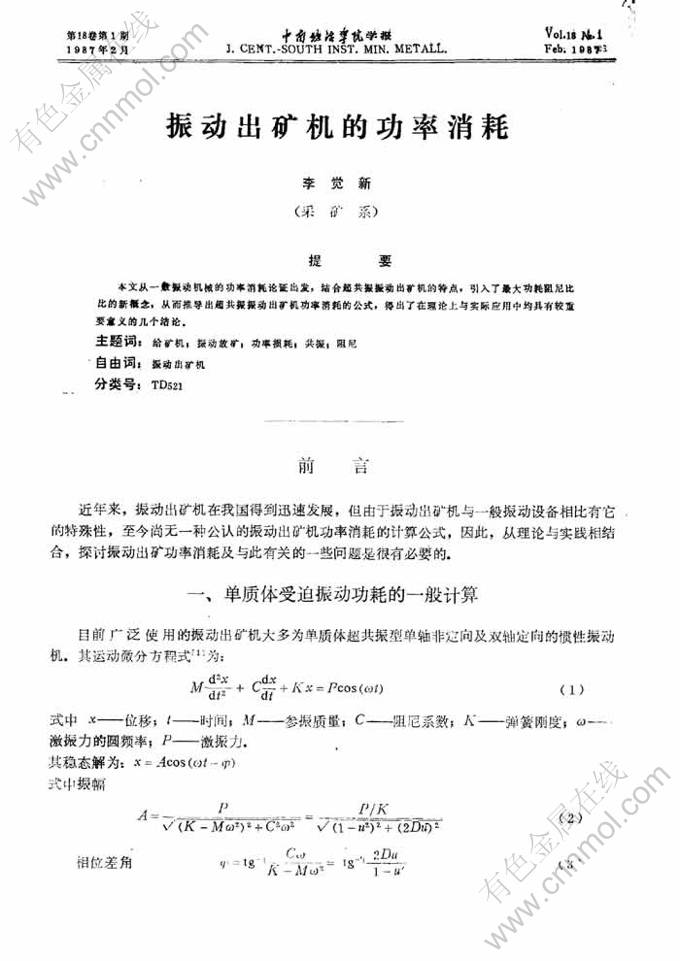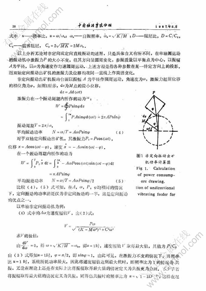 关键词:给矿机; 振动放矿; 功率损耗; 共振; 阻尼