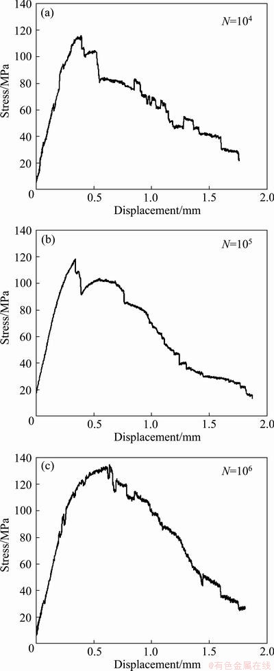 Fig. 4 Flexural stress—displacement curves of C/C composites at different fatigue cycles