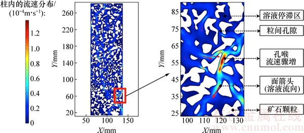 图8 柱内局部的溶液流速分布情况(以柱C为例)