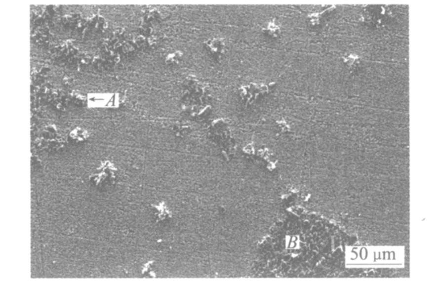 Abstract: The hot corrosion behavior of as-cast and homogenized TiAl intermetallics was studied in (Na, K)SO4 mixed melts at 900℃, and the mechanism of the hot corrosion was discussed. The results show that microstructure of the homogenized TiAl is composed of uniform γ phase and some α particles. For the as-cast TiAl, however, its microstructure consists of 30% γ phase and 70% (γ+α2 ) lamellar structures. Hot corrosion resistance is high in the homogenized TiAl. The corrosion products are Al2O3. There is a layer of Ti sulfide on the interface between TiAl substrate and the corrosion products. The as-cast TiAl intermetallics is poor in hot corrosion property. α2 phase in the lamellar structure is corroded preferentially because of higher Ti element content in α2 phase. Corrosion product for the as-cast TiAl consists of Ti oxide and sulfide that can be easily peeled off from the substrate.