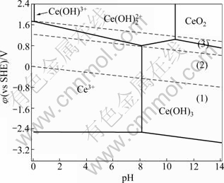 Fig. 8 φ—pH diagram for Ce–H2O system at 25 ℃[21]