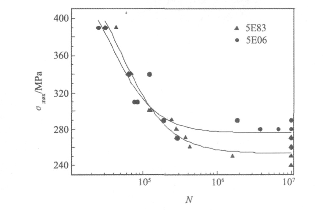 Fig.4 S -N curve of 5E06 and 5E83 alloys