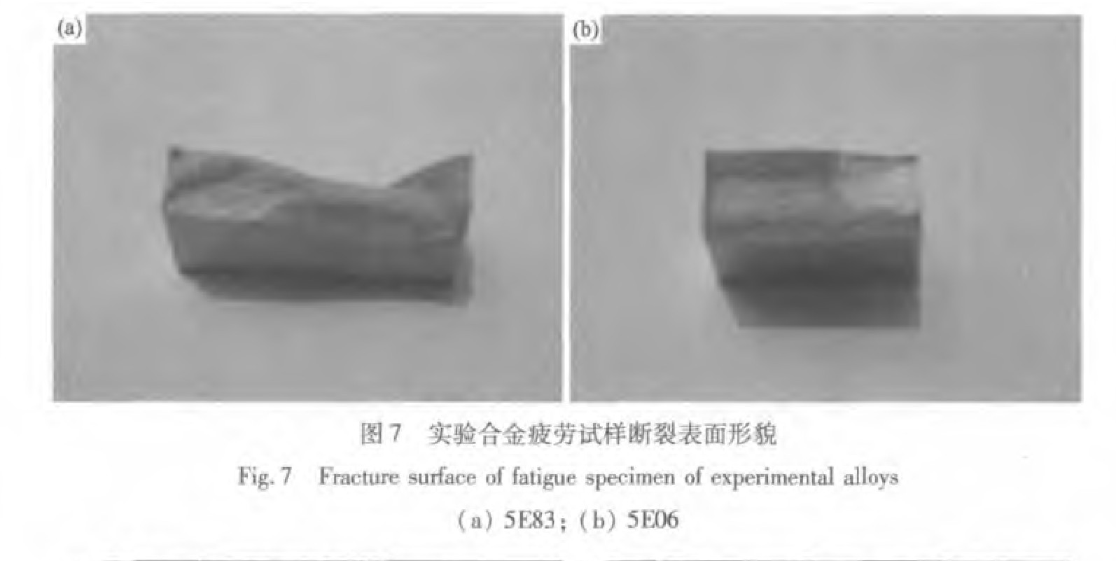 1. 5E83和5E06合金的疲劳强度分别为253和275 MPa。 5E06合金固溶较多的Mg, 即5E06较5E83具有较高的形变抗力, 变形抗力的提高可改善合金的疲劳强度。