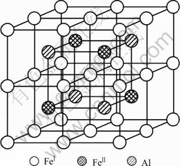 (m3m) type of space group. One DO3 cell consists of four A2 (bcc) cells and four B2 cells, belongs to face centered cubic structure. Its lattice constant a is 0.578 nm. The Fe atoms located in the center of cell interior, or in the center of cell edge and the top of the cell are expressed as FeⅠ. The Fe and Al atoms at the diagonal 1/4 and 3/4 of the cell interior are expressed as