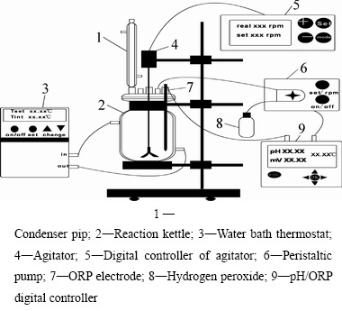 化学浸出实验在自制实验装置中进行,装置如图2所示,将配置好的硫酸铁/硫酸亚铁等反应体系溶液置于反应釜内,开启电动搅拌机和高温恒温循环水浴锅,待温度达到设定值并稳定后按固液比(g/mL)1:100的比例加入实验样品,反应开始计时。实验过程中用双氧水和硫酸亚铁溶液调节氧化还原电位,微电脑控制器将视电位情况启动蠕动泵自动泵入调节液至反应体系中,直至体系电位达到实验设定值。到达指定取样时间,停止搅拌,静置2 min后快速移取上清液进行固液分离,分析检测浸出液Cu、Fe、As浓度。待反应结束时过滤矿浆,用蒸馏水反复清洗浸出渣,浸出渣置于45 ℃真空干燥箱内12 h,密封保存在抽气式厌氧罐中。