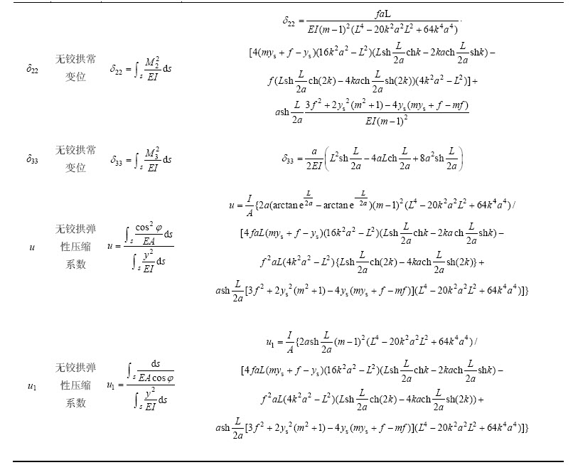 2 悬链线拱弹性常数及内力实用解析解