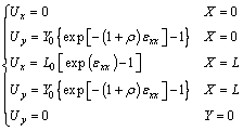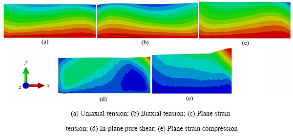 有限元分析时,位移边界条件可以使用沿x方向施加的应变εxx来概括,令模型z向和x向的应变比为ρ=εzz/εxx。边界条件的设定如下所示: