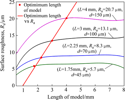 Fig. 3 Relationships among model length(L), grain size(d) and average surface roughness(Ra)