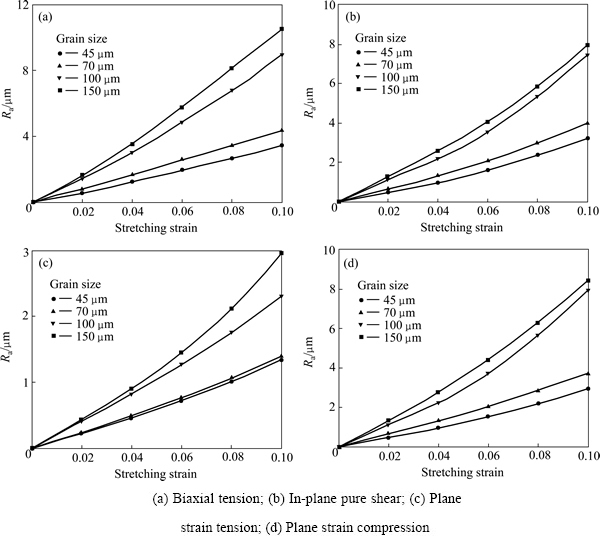 Fig. 5 Effect of grain size on surface roughness under different strain routes