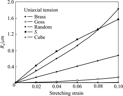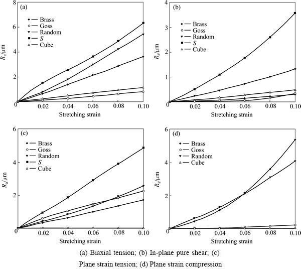 Fig. 8 Effect of texture type on surface roughening under different strain routes